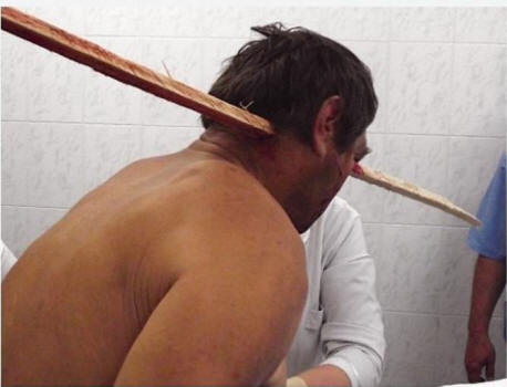 Ljekari na Odjelu za oralnu i maksilofacijalnu hirurgiju u bolnici Maykop ono što je u početku vidio bilo je bez riječi: čovjekova glava je prolazila kroz i kroz probijena drvenom šinom!