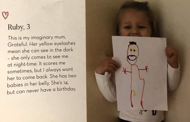 Pokazalo se da je učiteljica u bašti pitala decu razgovaraju o svojim imaginarnim prijateljima (ako ih ima, naravno, su dostupni), kao i nacrtati ove znakove. Onda djeca fotografirali sa svojim crtežima i slikama dodali opise izmišljeni drugovi da dečaci i devojčice mogu demonstrirajte to roditeljima. Međutim, Rubyev otac i majka ne osjeća se nimalo nježnom, gledajući umjetnost i citat kćeri. Evo šta je tamo napisano:
