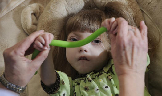U osam godina Gabby Williams teži samo pet kilograma, njezine crte lica i stanje kože – upravo onako novorođenčad.