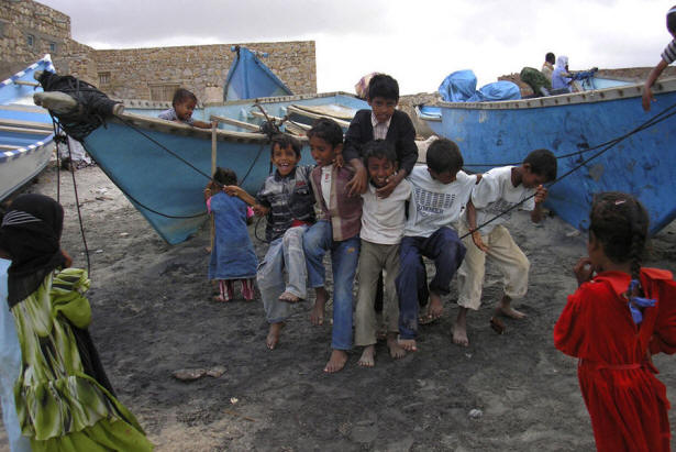 14. Djeca se igraju među ribarima na plaži u Kalenciji, druga Najveći grad na otoku Sokotra, 1. veljače 2008. (Reuters / Alistair Lyon)