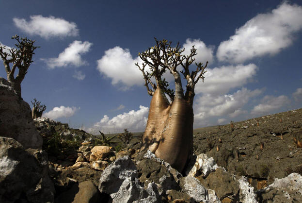 19. Sokotrijske pustinjske ruže, čija su masivna stabla prilagođen za skladištenje vode na padini brda u Wadi Dixam na Ostrvo Sokotra, 19. novembra 2013. (Reuters / Mohamed al-Sayaghi)