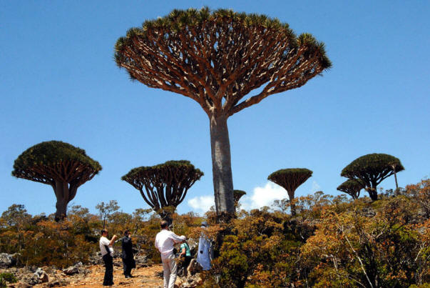 7. Jemeni i strani turisti se okupljaju divite se soku drveta Zmajeva krv na jemenskom ostrvu Sokotra, 27. marta 2008. (Khaled Fazaa / AFP / Getty Images)