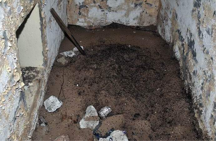 Ponekad slepi miševi upadaju u bunker. Naučnici vjeruju da njihovo izmet može poslužiti mravima kao inferiorna zamjena za hranu, međutim, tako dugo kolonija na takvoj dijeti nije mogla izdržati bi bilo. Primjetno je da su mravi odabrali zaseban beton soba veličine samo šest kvadratnih metara. Podignuti insekti na podu je pravi zemljani mravinjak, koji funkcionira gotovo tako isto kao i normalni mravinjaci na površini.