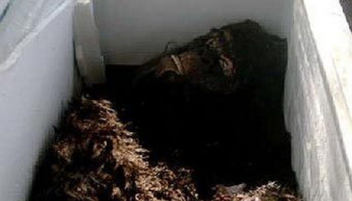 I opet, ovo leš se stavi u zamrzivač, odmeri visok dva i po metra, težak gotovo dvjesto i trideset kilograma, a takođe planiraju da pokažu jošis široj javnosti na specijalnoj konferenciji za štampu u Kaliforniji.