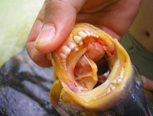 Ove su ribe legalne u Sjedinjenim Državama, a mogu se kupiti na web lokaciji trgovine za kućne ljubimce Problem je što su mnogi vlasnici akvarijumi nisu svjesni da paku može narasti više od metra, što je previše za tipični kućni akvarij. Kad kući životinja nadrasta svoj spremnik za ribu, vlasnici završavaju da ga puštaju u susjedna jezera. To objašnjava činjenicu ta se riba sa ljudskim zubima počela nalaziti u mnogih vodena tijela izvan svog prirodnog staništa.
