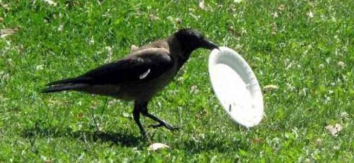 Na slikama u nastavku možete saznati još oko jednog intelektualni kvalitet vrane. Ispada da nije samo pametna i zanimljiva ptica, ali i svjesna. Izgleda kao vrana uzima jedno od nas napušteno jednokratno posuđe sa zemlje i odvodi je do urne. Ispada da je vrana pametnija i pristojnija od mnogih ljudi …