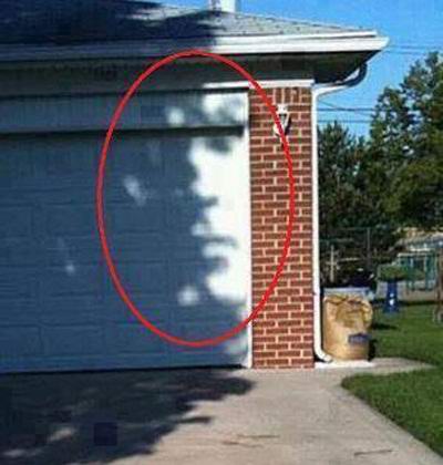 Druga slika poslata stručnjacima pokazuje sve to ista garaža, međutim izvana. Na vratima je vidljiva senka s krošnje. drveće, sklapajući se u poseban obris ljudskog lica. Čak i ako je to jedna od para idolskih iluzija koju oni toliko vole recimo skeptici, treba napomenuti da je ona vrlo impresivna i neobično. Navodni porijeklom iz drugog svijeta je čak i lijep labijalni utor, kao i jabučice ispod donje usne i na brada