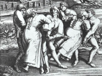 1374. godine na desetine sela uz Rajnu zahvatila smrtonosna bolest – plesna kuga ili, naučno, koreonijanija (ili ples St. Witta). Stotine ljudi na ulicama su skakali i radili kolena ispod nikog (osim, verovatno, sami plešu) ne mogu čuti muziku. Jeli su gotovo ništa i nisu spavao, ponekad i po nekoliko dana zaredom, dok mu se noge nisu slomile u krvi odbila ih je zadržati.