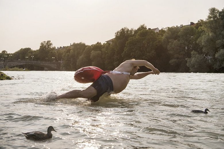 Svakog jutra, Benjamin skuplja stvari koje su mu potrebne. u poseban ruksak za plivanje i zaroni u vode rijeke Isar. Uveče radeći istu stvar, samo u suprotnom smjeru. Dva kilometara duž vodene arterije tamo – dva odande. U hladnoj sezoni čovek si obuče trenerku, u toplom – to košta kupaće gaće.
