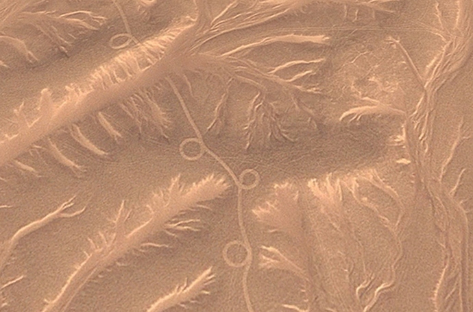 Danas uz pomoć Google Earth Online možete vidjeti Egipat, okolni pijesci i virtualno zaviruju pod njih. Under lako je otkriti neki fantastičan pijesak misteriozni ukras koji priroda očito nije napravila, ali nije jasan od koga i u koje svrhe. Pod pijeskom se, kako se ispostavilo, nalazi masa sve vrste linija, ravne, zakrivljene, čineći svojevrsnu petlju ili razvijanja u određenim likovima. Štoviše, sve ove petlje i tigrasti su samo ogromni, to je sa prostora koji izgledaju poprilično minijaturni. Na zemlji, to su kilometri zavoja i linija za stotine kilometara.
