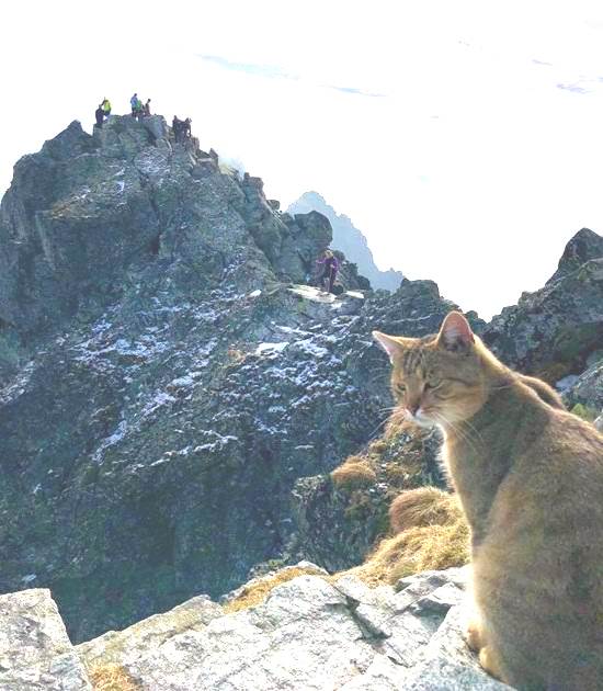 Međutim, na samom vrhu, naš junak se iznenada … sreo poprilično neočekivanog stranca koji nevjerovatno zbunjeno i iznenadila penjača. Na vrhu Lynxa je, očito, sjedila lijepa mačka đumbira domaći i čistokrvni, mirno ližući šape. Iznenađeni Wojciech požurio je da uzme svoj mobitel i uhvati “neprikladna” životinja na kameri.