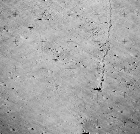 Odabir mesta za sletanje na Apolon mesec, orbitalno Uređaji serije “Moon Orbiter” napravili su mnogo jasnih fotografija u potencijalna mjesta za slijetanje astronauta. Na kojem, uključujući zarobljeni su brojni otisci stopala i opskurno “hodanje” kamenje. ”