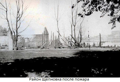 Farma tenkova je sagrađena u pretrevolucionarno doba. Čvrsto pridodao urbano područje Ščepnovka, izgrađeno jednokatnicom drvene kuće. Izbila se prva kuća, a uslijedila je druga. Skačući od zgrade do zgrade, plamen se pomicao u stranu središnjem dijelu grada.