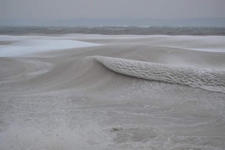Divite se i snežnim talasima. Video snimak na sjeveru Sahalinska ostrva. Tako se Okhotsko more smrzava – smrzava se, nevoljko pretvara se u “snežnu kašu”, a potom i snežno-ledeni pokrivač. Međutim, zamrznuti prozirni talasi ovdje nikada nisu viđeni …