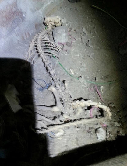 Kostur nepoznatog stvorenja koje, izgleda, živeli u podrumu stambene zgrade kod kuće, otkrili su električara koji sproveli novo ožičenje ispod poda.