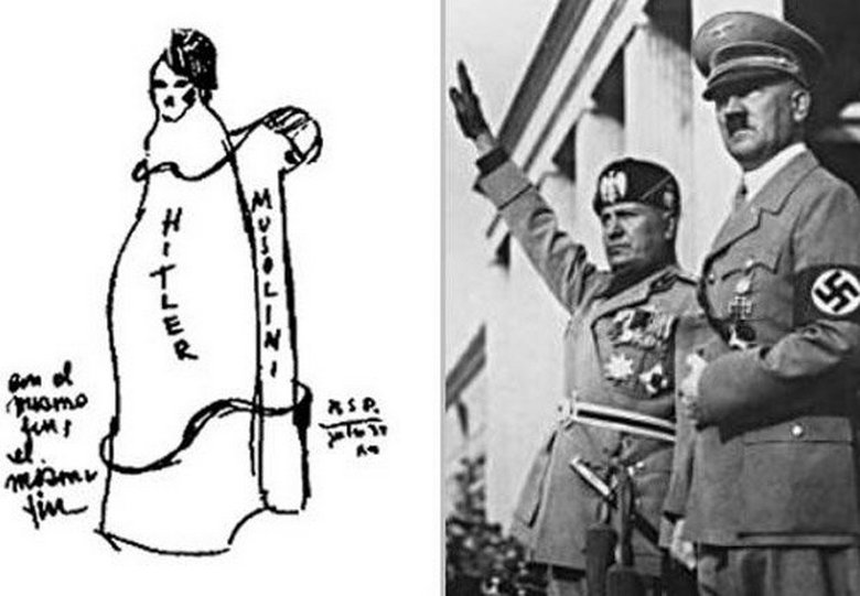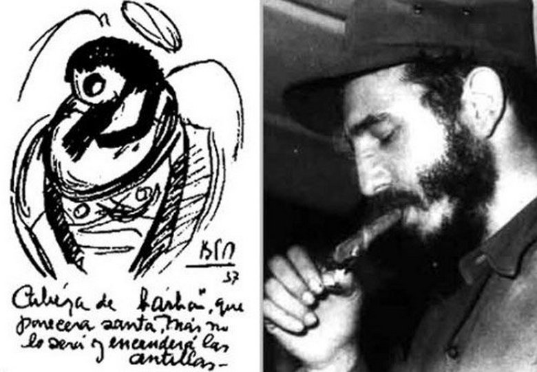 Ali ovde je crtež Benjamina iz 1937. godine, a na njemu je muškarac sa bradom, koje će prema nacrtu zapaliti Antile ostrva. Na ovaj arhipelag ulazi Kuba, ali Fidel Castro u to je vrijeme imao samo 11 godina.