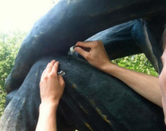 Na skulpturi se mrlje tečnosti.