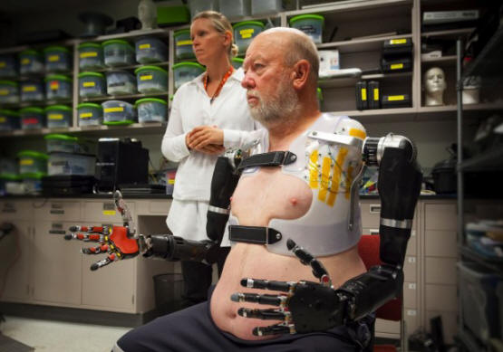 Fotografija iz otvorenih izvora Prije četrdeset godina izgubio je obje ruke, ali sada ima dva manipulatora kontrolirana mislima. Za otpočeli su hiruršku operaciju, čija je suština, kao i ja ostvaren u identificiranju živaca odgovornih za pokret ruku. Onda od pacijenta je zatraženo da razmisli o pokretu ruke, i to u ovo vrijeme očitani su signali iz živčanih završetaka. Kao rezultat toga, obrasci signala odgovorni za određeni pokret.