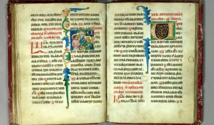1717. godine, Petar Veliki je posetio Francusku, naravno i u Rajnu, gdje su mu pokazali katoličke svećenike njegova glavna relikvija je stari rukopis napisan na jeziku anđeli. Međutim, Peter je, uzevši knjigu u ruke, slobodno počeo naglas čitati tekst napisan u njemu, što je prilično iznenadilo lokalne monahe. Ne manje, otkrivena je tajanstvena tajanstvena Biblija – ispostavilo se napisana na ruskom.