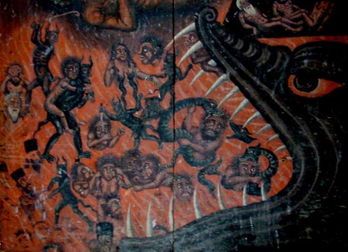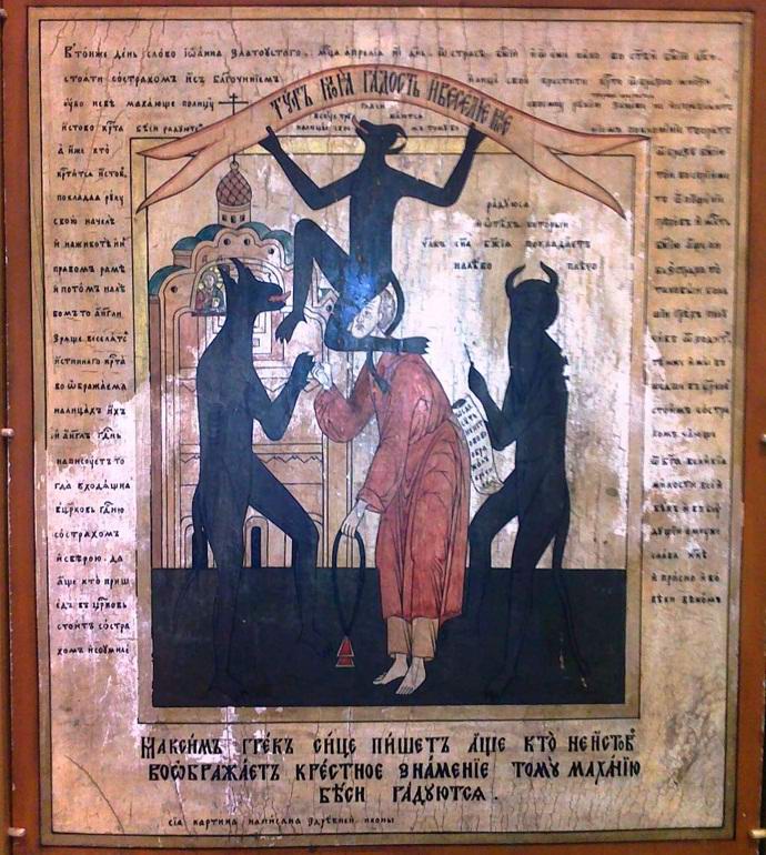 U srednjovjekovno doba tzv Opisne ikone koje sadrže boju, platu ili gesso antikršćanske crteže skrivene od očiju posmatrača. Ovi crteži portretirao vraga, demone, pakao i druge vragove. Na sliku sveci, na primer, mogu se oslikati rogovi. U ovom slučaju eksterno sloj ikone pokazao je tradicionalne hrišćanske predmete: Majka Božja, Spasitelj, apostoli i tako dalje.