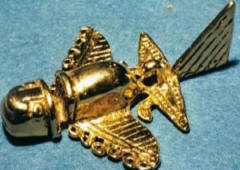 Fotografija iz otvorenih izvora Prema Daniken-u, pre oko 14 000 godina vanzemaljci su na Zemlju stigli s misterioznim ciljevima. Oni su rabljeni avioni, helikopteri i svemirski brodovi. Šokiran snagom i tehnologijom vanzemaljaca čovječanstvo je počelo da je obogaćuje stranci. Kad su jednako iznenada nestali, počeli su i ljudi stvorite neke uslovne kopije onoga što su vidjeli. I odredište Pogon Sabu – ne da služi kao propeler aviona, nego uzrok „zlatnog aviona“ ne leti. Zadatak ovih predmeta je prikazati ono što ljudi vide u sebi kao predmeti obožavanja. Ova teorija može u potpunosti objasniti većina artefakata nije bila dostupna u vrijeme njihove izrade tehnologijama i crtežima rasprostranjenim po cijeloj Zemlji, slično slike stranaca. Usput, napravili su je njemački inženjeri od modernih materijala dostavljena je kopija „zlatnog aviona“ motor i ne samo da je leteo, nego i demonstrirao aerodinamičke performanse nisu gore od modernih zrakoplovni modeli.