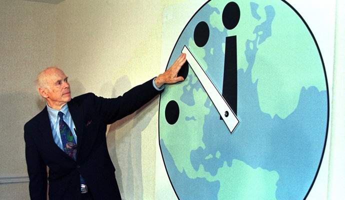 1953. SAD i SSSR testirali su termonuklearne bombe i satove Doomsday se počeo prikazivati 23:58. Ovo je najbliže ovome trenutka položaja ruku sata do ponoći – do Sudnjeg dana.