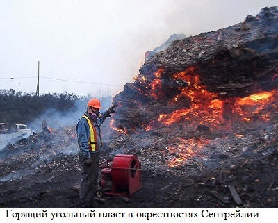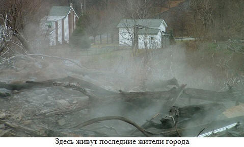 Godine 1979, vlasnik lokalne benzinske pumpe, mjerenje nivoa od gorivo u jednom od svojih podzemnih rezervoara, skrenuo je pažnju, da je uklonjena sonda neshvatljivo vruća. Izmerio je temperaturu goriva u skladištenje i užasnuto: 78 stepeni! Pokazalo se da grad živi dalje tinjajući praškast keg. Gradske vlasti bile su primorane da priznaju prisustvo opasnosti.