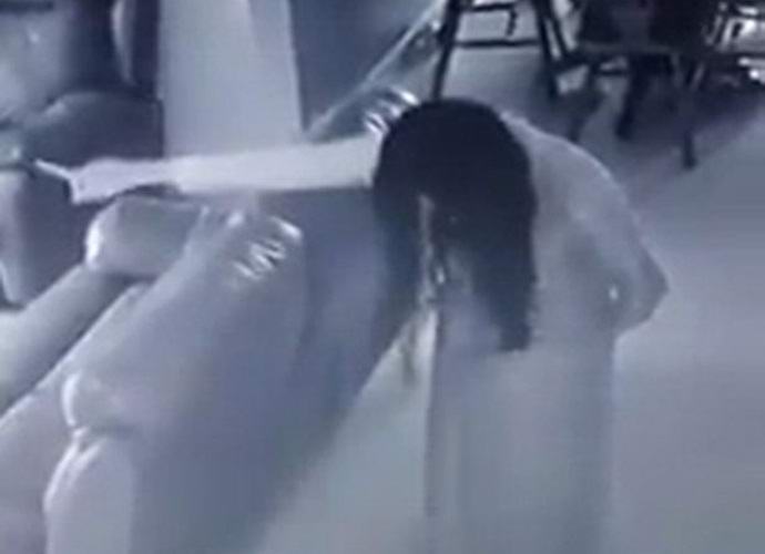 U tom je stanju otišla do nadzorne kamere u kući poslodavca. Duga crna kosa žene pala joj je na lice glava i telo su bili nagnuti napred. Ponekad jeziva dama pokazujući rukom negdje u stranu, u prazan prostor.