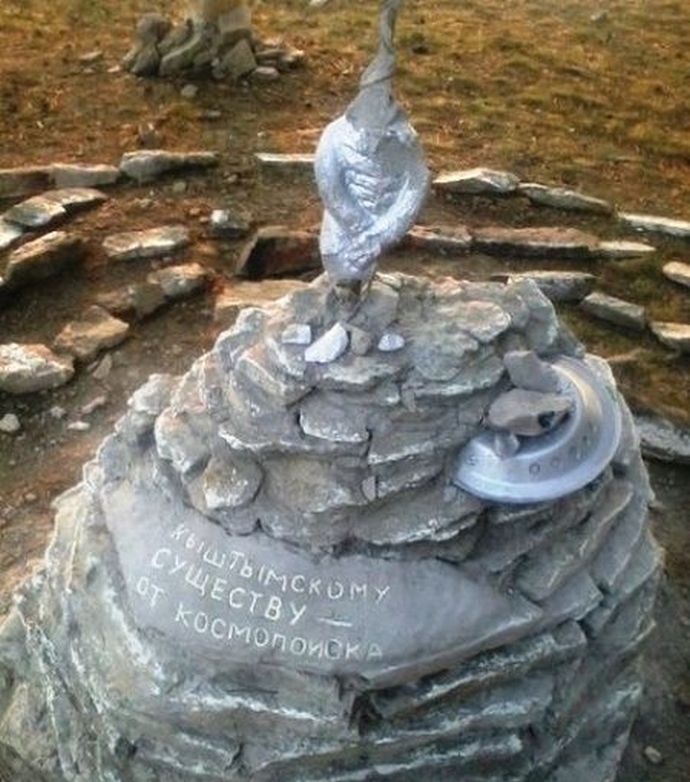 Spomenik malom vanzemaljcu napravljen je u prirodnom vrijednost prema fotobotu koji je u jednom trenutku sastavio Černobrov prema Prema izjavama očevidaca tog događaja. I tako je bilo neobično izgradnja na jezeru Anbash. Članovi ekspedicije su pokušali napraviti spomenik vandal. Prvo, učinili su ga prilično čvrstim – od kamena, betona i gvožđa. Drugo, pod uvjetom najneutralnije natpis – “Kištimskom stvorenju – iz Kosmopoiska.” Čini se sve je urađeno radi sigurnosti …
