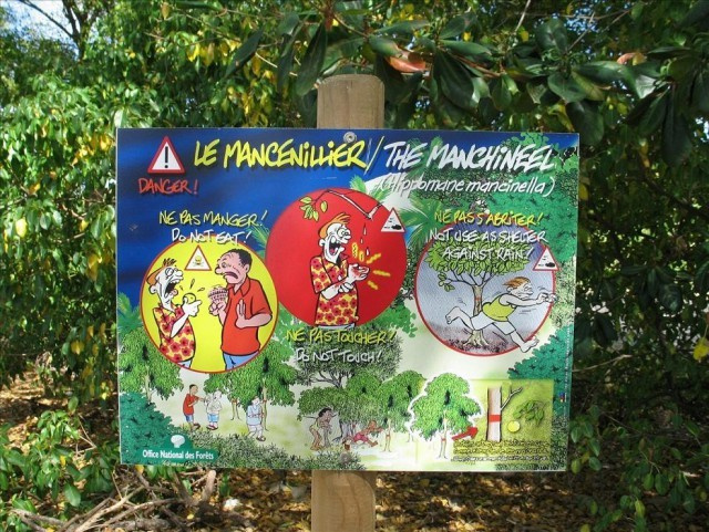 Drvo je toliko opasno da na svojim mjestima raste stabla mancinella okružena su ogradama i tabletama sa upozorenja. Razlog za to je jeziv – glavni otrov stabla je tvar koja se zove phorbol koja je odlična rastvorljiv u vodi. Stoga, ako pada kiša, onda pored drveta ova kiša neće biti baš dobra za zdravlje.