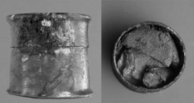 Pixida i tablete (foto G. Giachi i dr.). Takođe bilo je artefakata navodno pohranjenih u pokvarenom drvetu škrinja: drvene zdjele, čaša koja se vjerojatno koristila krvotok i ostali pribor drevnog doktora. Među drugi su predmeti bili mali limarski cilindar – piksid, in koje leže pet tableta promjera oko 4 cm. Plovilo je zatvorena tako čvrsto da je njegov sadržaj sačuvan do našeg dana. Analiza jedne od pilula italijanskih naučnika pokazali su da su glavne komponente drevnog napitka oksid cink (hidrozinkit) i cink spar (smitsonit). Takođe u sastav je uključivao razne životinjske i biljne materije porijekla, prije svega polena, pčelinjeg voska i smole bora. Naučnici napominju da u spisima rimskog Plinija Starijeg i Grka Pisma Dioskorida, priznatih autoriteta svog vremena, Cink-spojevi se nazivaju blagotvornima za oči i kožu. Usput pojavljuje se latinski „kolirijum“ što znači „losion za oči“ od grčke riječi za male okrugle hljebove. Prvobitno se vjerovalo da su to svojevrsni vitamini koji mornari konzumirani za vrijeme dugih plovidbi. Rezultati studije objavljene u časopisu Proceedings of the National Akademija nauka. Pripremljeno na osnovu ScienceNOW-a.