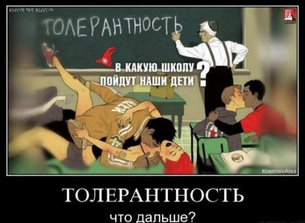 Fotografija iz otvorenih izvora. Najmodernija riječ našeg vremena je “tolerancija”. „Morate biti tolerantniji jedno prema drugom“, kažu oni intelektualci i liberali. “Moramo se poštovati”, – zasljepljuje naslovi u novinama. “Svi smo ljudi”, čuje se sa TV ekrana. I na prvi pogled čini se da je tako. Ali hajde da smislimo šta je tolerancija. Ako pogledate u bilo koji rječnik ili samo upišite ovu riječ u pretraživač, a zatim i jedno od značenja biće sledeće: “Tolerancija je nesposobnost organizma razlikovati strane organe. Ovo se stanje postiže postepeno inhibicija toksičnih supstanci telesnog imunološkog sistema, što dovodi nju na apatiju i ravnodušnost. Potpuna tolerancija je smrt. ” Možda zaista treba nešto razmisliti. Jedna stvar poštuju međusobni svjetonazor, a drugi su da se iskore počeci ljubaznog i vedrog zadovoljiti bolesno društvo, ikone koju stavljaju na komade mesa umjesto odjeće, izlažući doveo u pitanje samu definiciju “Homo sapiensa”. Osvrćući se oko sebe možete vidjeti kako su ljudi namjerno zaraženi jezivim informacijama čirevi i glavni alat za to su laži, nemoral i zamjena pojmova koji su zasićili mnoga sredstva masovni mediji. Ovi poroci postavljaju se u savremenom društvu Srbije načelo norme, a kada je trulež previše očigledna, onda je to, Nažalost, to više ne izaziva dosadašnje ogorčenje. Zamislite vas vidjeli su mrlju od mastila na njihovoj svijetloj odjeći. Vi to razumijete ova mrlja vam pokvari stvar, i naravno da je želite popraviti i poduzmite neku akciju. Ali kako ne biste trošili napor uklanjanje mrlja, vi odlučujete samo obojiti i upropastiti cjelinu odeća, čineći je bojom te prljave mrlje. Ista stvar događa s društvom. Umesto da uklonite ognjište zagađenje, vidimo kako je sve ostalo prljavo i čujemo pozive tretirajte to s poštovanjem i tolerancijom, što nas u konačnici vodi potpunu socijalnu apatiju i ravnodušnost.