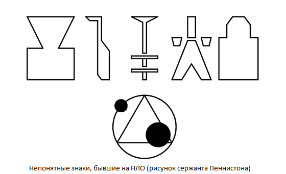 Probijajući se kroz šumu, narednik i privatnik ušli su na čistinu. U njoj u sredini su ugledali objekt – isječenu piramidu od 3 metra unutra promjer donje baze i 2 – gornje. Nije stajala tla i visio na visini od oko 1 metar, kao da se “naslanja” na tri svjetlosni stubovi. Crveno svjetlo lebdilo je i treperilo iznad piramide i ispod dva plava visjela su s nje. Na površini objekta vojnici su se razišli nerazumljivi znakovi. “Napred”, tiho naredio narednik. Burroughs je poletio karabin za ramena.