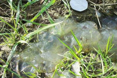 Tajanstvena supstanca nalik jelu otkrivena je u Rezervat zida Ham, Somerset, Engleska. Tvrdite to došla je iz svemira. Prema folkloru, slična sluz, nazvana “zvijezda mliječ” se više puta pojavila nakon meteorski pljuskovi. Ovoga puta posetioci rezervata su posrnuli “žele” tri dana nakon pada Čeljabinskog meteorita. Predstavnik Kraljevskog društva za zaštitu ptica Tony Whitehead komentar je pronašao na sledeći način: “Iako ne znamo o čemu se radi, međutim, opisi takvih pojava susretali smo se i prije. U 14. vijeku ih koja se naziva “zvjezdana mliječ”. U folkloru se spominje da “žele” uvek se pojavljivala posle “zvezdanskih kiša”. Posetioci rezervata upozorio da se ne dira u obliku žele supstance – posljednjih nekoliko dana ljudi i dalje pronalaze “zvijezdu” žele u raznim mjestima rezervata, uvijek na travi i lijepi daleko od vode. Promjer svake žele je približno 10 cm naučnici su podijeljeni: neki kažu da je to najvjerojatnije jedan vrste plavo-zelenih algi, drugi vjeruju da tvar – rezultat regurgitacije jednog od vodozemaca, trećeg – koji ima gljiva sa intrigantnim nazivom biser. ”
