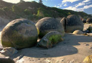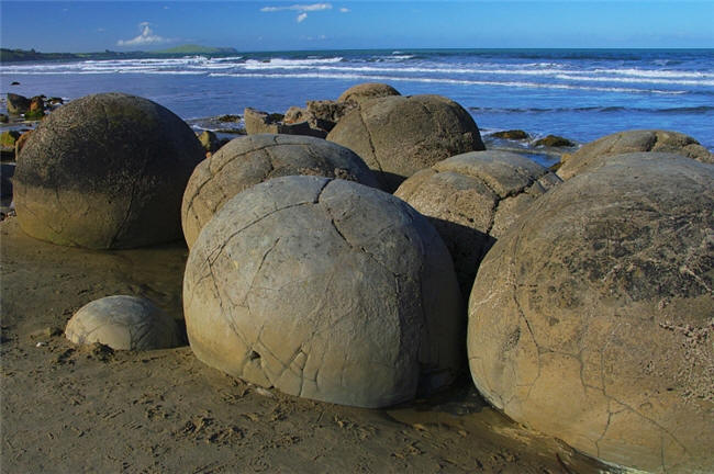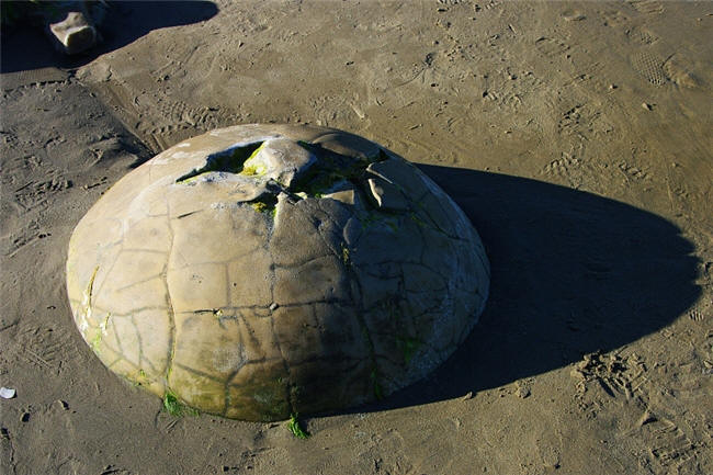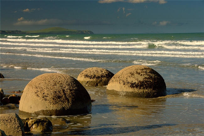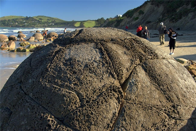 Fotografija iz otvorenih izvora 80 kilometara sjeverno od Dunedina (Novo Zeland), između gradova Palmerstone i Hampden nalazi se Moeraki – najpoznatija na jugoistočnoj obali Južnog ostrva Moeraki balvani – pravi prirodni pojava. Ogroman, prečnik do dva do tri metra, sferni balvani gotovo savršenog oblika, težak do 4 tone svaki. Veličanstvena tvorevina prirode, koja prije i dalje ostaje misterija svima. Vjeruje se da su najmanje 60 milion godina Ogromni sferični balvani, poput graška, raštrkani su po cijeloj strani peščana obala. Neki se skrivaju pod vodom pri visokoj plima drugi su bačeni daleko na zemlju. Legenda o Maori, starosjedioci Novi Zeland navodi da je kamenje misteriozno bačeno na obali nekog ogromnog kanua koji se srušio. Nego ne verzija primitivnih ljudi o poseti vanzemaljcima? Pogotovo ako pomno pogledajte sami kamenje, vidite i skala formirana na kapsulama nakon prelaska zemlje atmosfera.