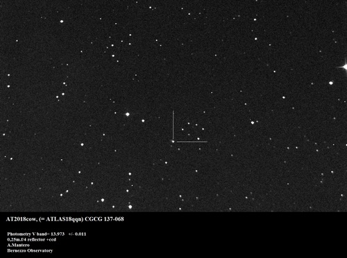 Sve je počelo činjenicom da su 16. juna ove godine teleskopi Kekova opservatorija na Havajima zabilježila je pojavu još jednog supernova koju je (već po tradiciji) odredio sam računar poput AT2018cow (takva „krava“), to jest ako tome dodajte neke slike zatim u sazvežđu Herkulu rođena je “zvijezda-krava”.