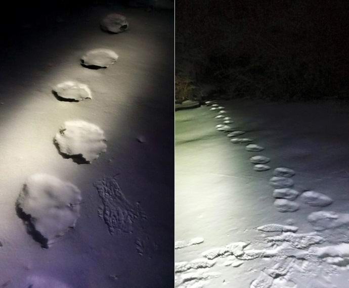 Neobično veliki otisci stopala na snijegu nalikuju bosih staza ljudske noge, ali njihove nerazmjerne dimenzije ukazuju da su ovi otisci ostavili mnogo veće i veće stvorenje. Stoga nije čudno što očevici odmah pomislio na yetija.