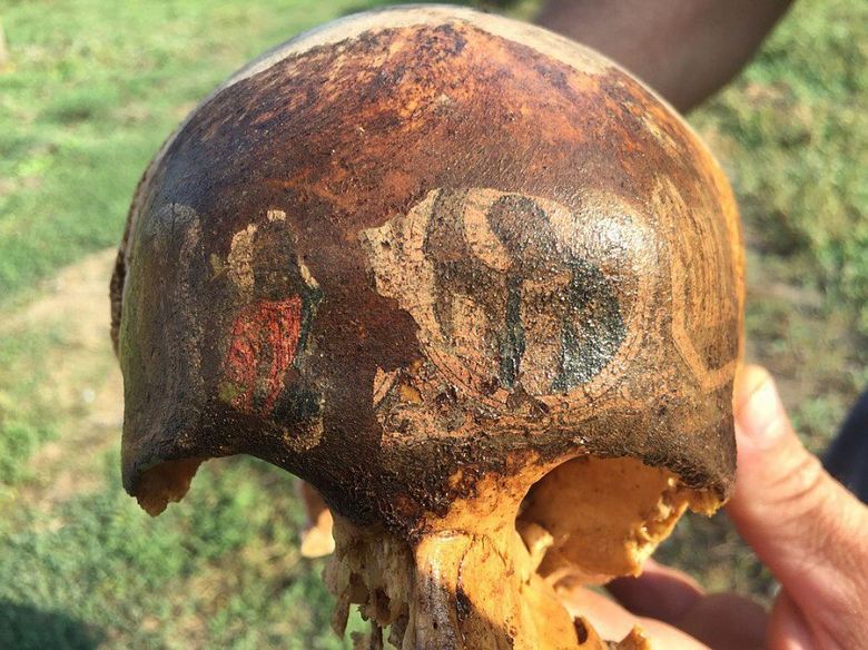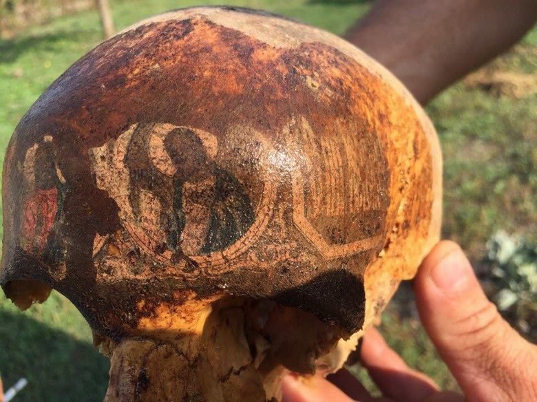 Neki učenjaci sugeriraju da se ovaj čovjek možda nosio ispod slika tvrdog šešira svetaca, čije su boje na kraju prešle na lobanju. Sve je to u principu moguće, ali kako profesionalci kažu umjetnika, čak je i ovo pravo čudo, imajući u vidu sve uvjete “tjelesni sadržaj” i vrijeme koje je proveo u vlažnoj zemlji. Na to iste, boje na slikama, na primjer, na papiru, šal ili vezene ikona, bile su boje sovjetske ere (čak i ako je XIX vijek), daleko nije tako dobro kao, recimo, u starom Egiptu (prema analogije gdje su u zemlji pronađeni artefakti s dobro očuvanim boje). Takve boje su čak i izblijedjele vani, gubeći svoju značaj. I evo – zemlja, vlaga, promjene temperature, konačno, mikrobi. Lakše je vjerovati u božansko čudo …