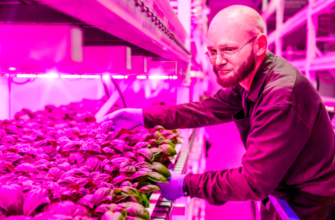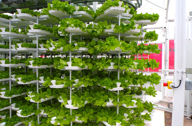 Najveća unutarnja farma na svijetu nalazi se u Japanu. Je ogromna soba opremljena dizajnom okomitih nosača, ispunjene tankim ležištima za tlo. Farma proizvodi 100 puta više povrća po metru kvadratnom nego bilo koje drugo domaćinstvo. Vertikalni dizajner farmi razvio je poseban diodni sistem osvetljenje koje kontroliše temperaturu, vlažnost, osvetljenje, a takođe smanjuje otpad od hrane sa 30 na 40%.