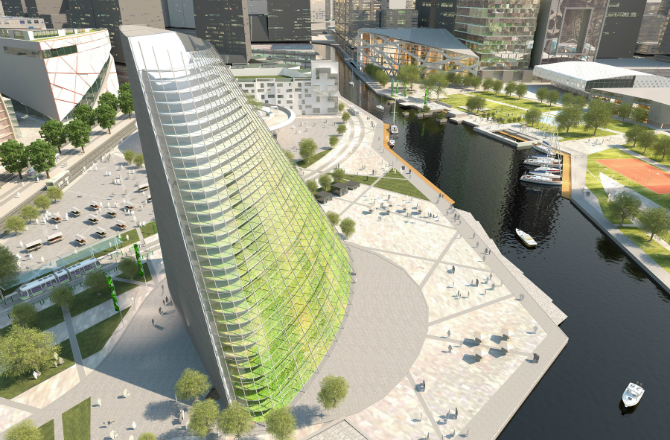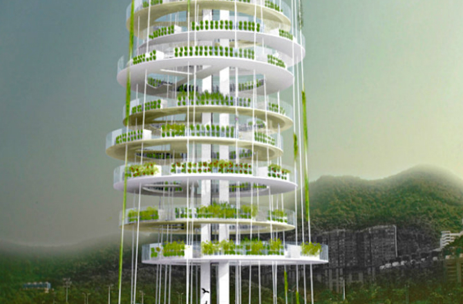 Fotografija iz otvorenih izvora Spiralna Ova vertikala farma u obliku vrtložne spirale koja se spušta u zgradu hoće imaju visinu veću od 85 m. Spirala je dizajnirana da nekoliko meseci posejali su useve i tada sakupljeno na dnu građevine.