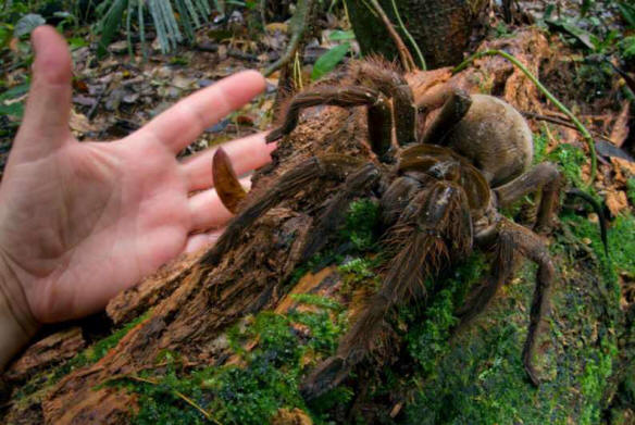 Entomolog Peter Naskreski rekao je to kad jednom izveo noćnu šetnju prašumom u Gvajani, a zatim se začuo šuštanje, kao da je netko puzao pod nogama. Kad je Petar blistao baterijsku lampu, očekivao je da će vidjeti malu životinju, ali vidio je ogroman pauk veličine malog psa.