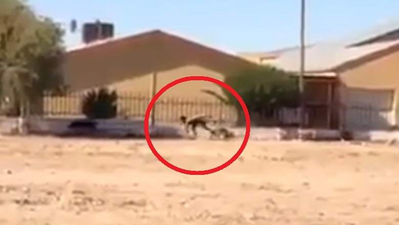 Trominutni video snimak u nastavku sniman je sa prozora vožnja automobila u blizini pustoš. Vozač je primijetio u pustinji čopor pasa lutalica u kojem je trčalo humanoidno stvorenje. Mislili biste da je to obična osoba, samo iz nekog razloga krećući se na sve četiri. Međutim zašto on tako brzo trči i spretno, dok ga lutalice jasno uzimaju za svoje? Ovdje se nešto ne uklapa. Očigledno, taj čovek je takođe smatrao vozeći automobil koji nije bio previše lijen da se vozi nekoliko puta naprijed i nazad za bolji pregled, a takođe i snimanje video zapisa ovo je misteriozno stvorenje. Istina, još je izašao iz automobila Bilo me je strah.