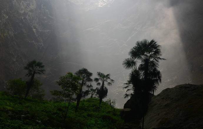 Otprilike je dubina zadivljujuće šupljine u zemljinoj kori dvjesto devedeset metara. Donedavno, blizu ulaza u pećina je bila velika deponija. Kad lokalne vlasti odlučili da ga uklone i potpuno očiste teritoriju smeća, Kinezi su otkrili ogromnu rupu koja vodi negdje dolje. Ispostavilo se da postoje velike zelene površine sa travom pod zemljom, grmlje i čak drveće.