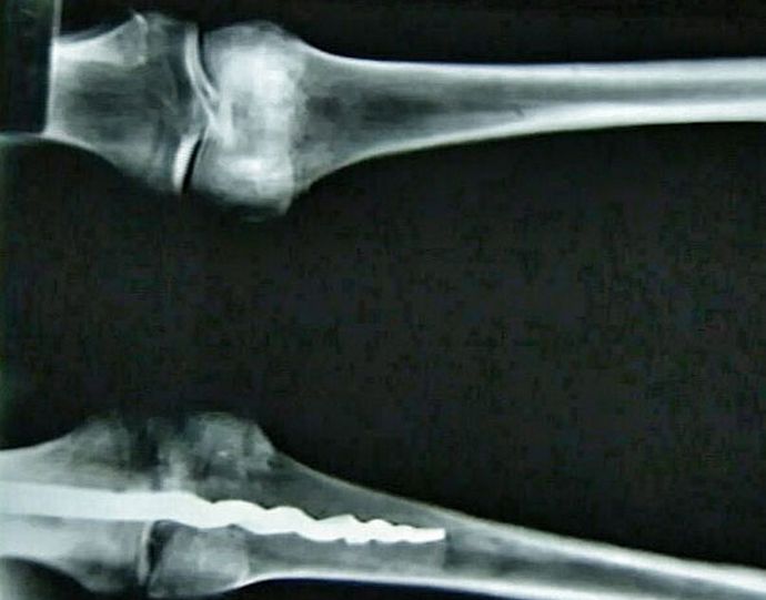 Prema stručnjacima, u kolenu čovjeka su drevni kirurzi stavite osovinicu koja učvršćuje kosti i osigurajte je organska smola. To su učinili tako vješto i profesionalno, da i najsloženija operacija nije ostavila traga na pacijentovom telu. Sudeći prema otkrivenom nalazu, metodama, koriste je ljekari u savremenoj medicini odavno poznati našim precima i uspješno ih primjenjuju u praksi.