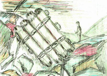 Splav je smješten na nadmorskoj visini od 300-400 metara iznad rijeke. Četiri debeli trupci, od kojih se svaki ne može zamotati u dva ruke, vješto povezane jedna na drugu na stari način: sigé palice prethodno zagrejane nad vatrom deblji od nečijeg zgloba. Gomile listova i posebni otvori za štapovi u trupcima rade se vrlo pažljivo.