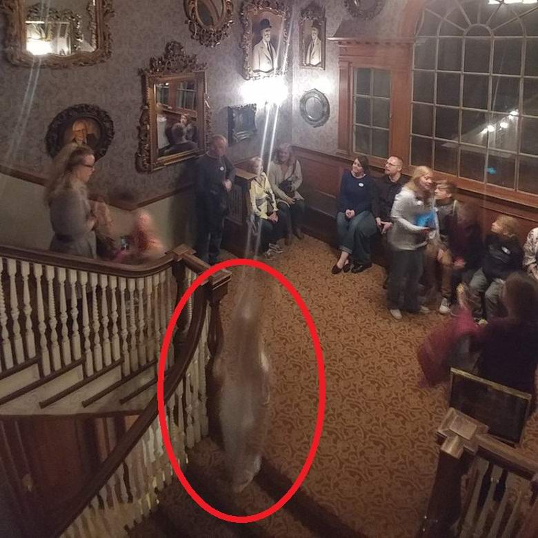 U 108-godišnjem hotelu sa 142 sobe i ranije fotografiranim zloslutne sjene i siluete u tami dugih praznih hodnika sad su očevici uspeli da pucaju neverovatno jasno u ove zidove sablasna figura, pa čak i okružena mnogim ljudima. Grozan, tada vrlo radoznao prizor.