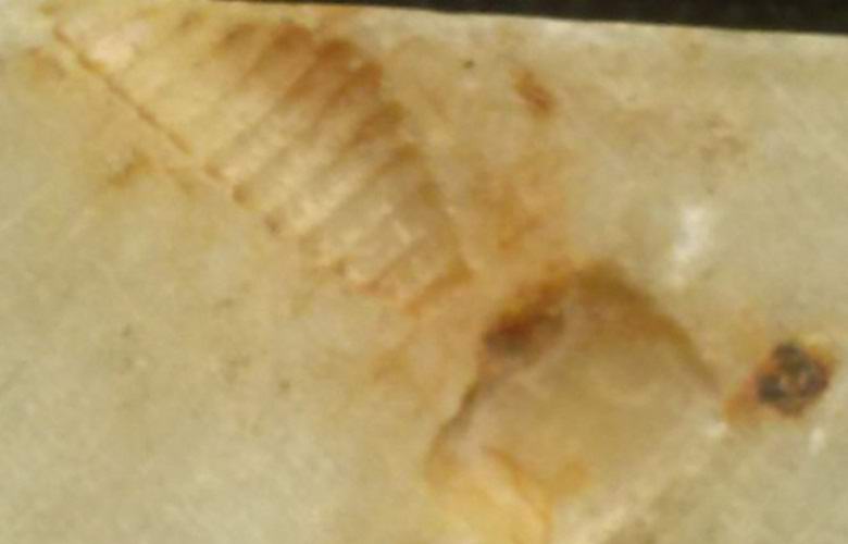 Ruski izvještava da je formirana ta mermerna ploča prije oko 30 miliona godina kada nije bilo metalnih vijaka i orahe, i doista nije bilo metalnih predmeta na vidiku. Poduzetnik Orenburger otkrio je starost kamena naručivanjem mineraloška, rendgenska i spektralna analiza ploče. “Kad Pokazaću vam tačnu lokaciju od koje je dobijen ovaj mermer. paušalno ”, piše nepoznati prodavač.