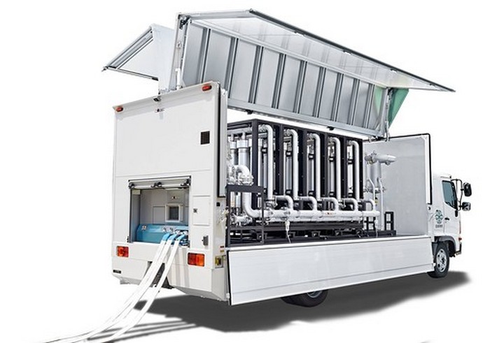 Zvanično, u pitanju su zaposleni japanske kompanije Morita Holdings Corporatio razvio je mini instalaciju pod nazivom Habot-mini, koji može ugasiti požar bez upotrebe vode ili bilo kojim drugim sredstvom, na primjer, hemijskim. Ova jedinica nije prelazeći veličinu kolica i težine samo pedeset kilograma može se takmičiti u performansama i gašenje efikasnosti sa svim modernim gradskim požarima automobilom.
