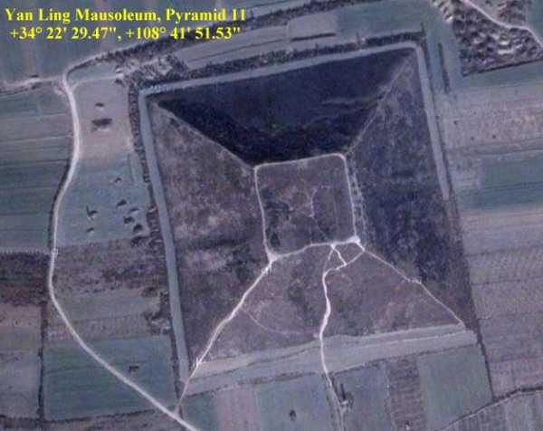 Kineske piramide izgrađene su od lena – mješavine gline i zemlje. Obronci mnogih praktičnih Kineza bili su posađeni drvećem, pa sa oni se ne razlikuju od prirodnih entiteta. Izračunava ih zračne fotografije bez strasti: “brda” imaju strog četverokutan postolje, uredan ravni vrh, 4 pravilno izrezana ivica a strogo orijentirana na kardinalne točke. Danas Poznato je da se na površini od gotovo 2.000 kvadratnih kilometara. piramide ne 30, ali više 100. Područje je dobilo neizrečeno ime Dolina piramida.