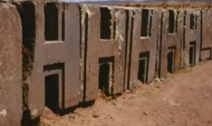 Na malom području od nekoliko hektara, ogromno andesitne ploče, od kojih neke teže i do 500 tona. Savremeni arheolozi kažu da je materijal ovih ploča andesit i diorit – potječe iz planina koje leže 17 km od mjesta pronalazeći ove divovske ruševine. U principu, to nije ništa dokazuje, jer ni moderna tehnologija nije sposobna prevoziti 500-tonski kameni blok teren. Savremeni arheolozi ne mogu inteligentno objasniti kako su ovi blokovi isečeni, obrađeni, prevozeni, sastavljeni u jednoj strukturi. Jedino uspjeli su – oni se jednoglasno slažu sa verzijom o uništenja ove megalitske građe kao posljedice najjačih zemljotresi koji su mnogo bolji od moderne Richterove skale.